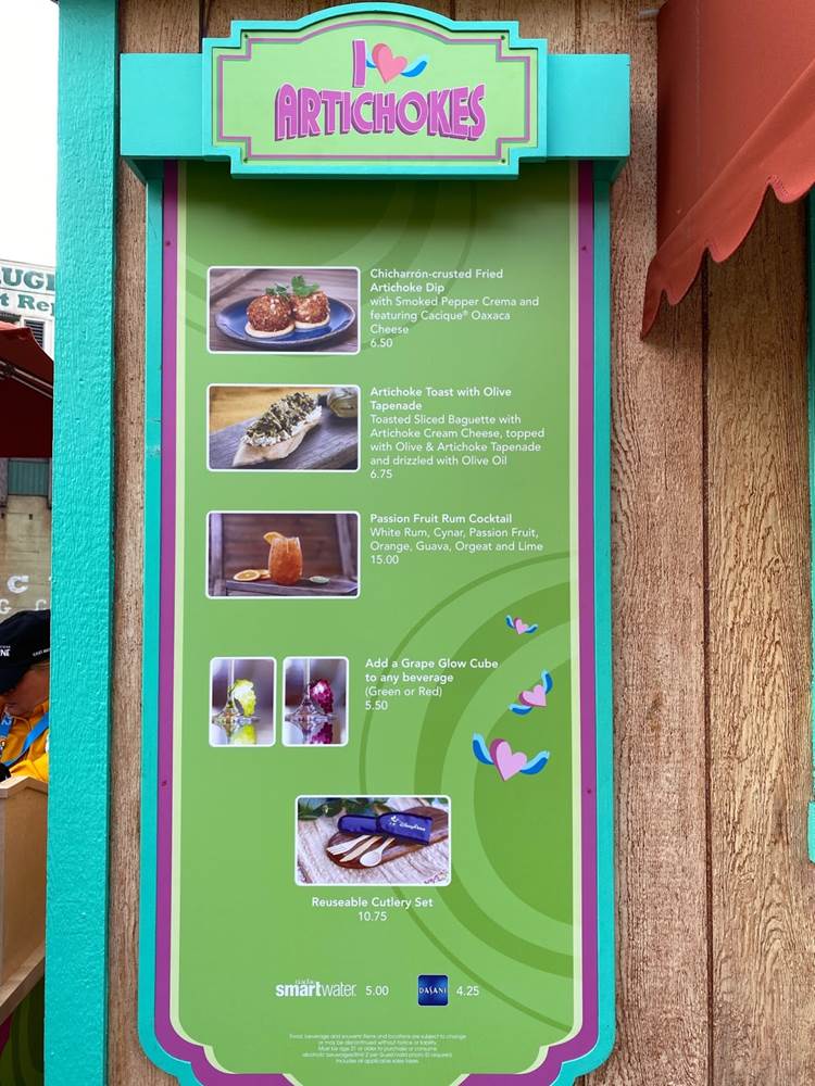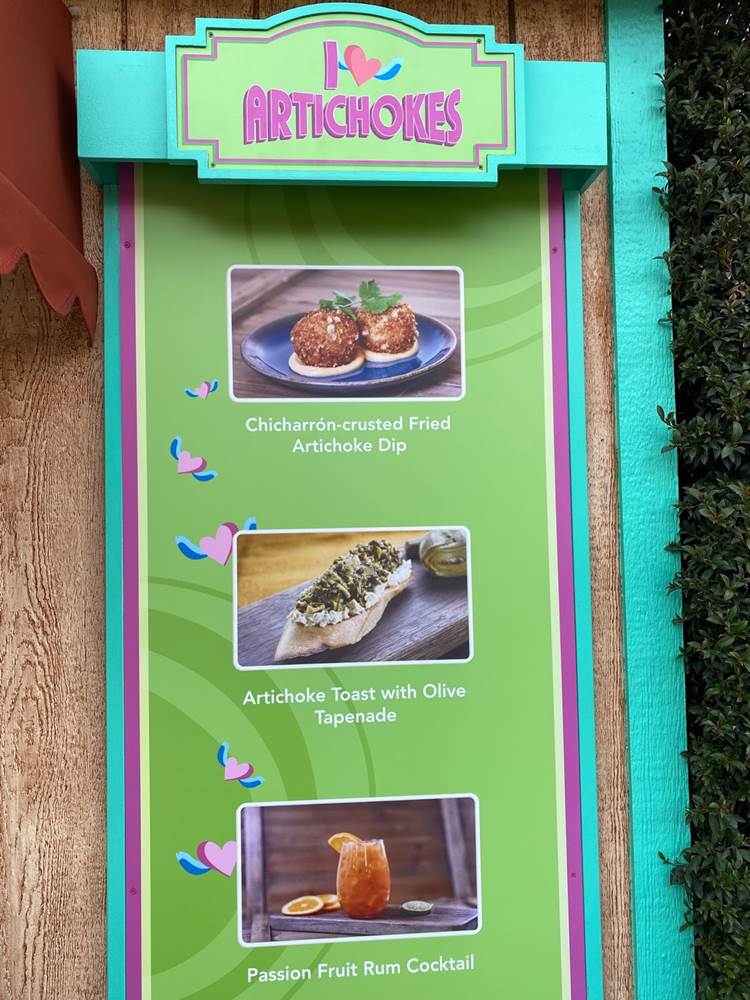 “I ❤️ Artichokes” features fried artichoke dip, artichoke toast, and a passion fruit cocktail.