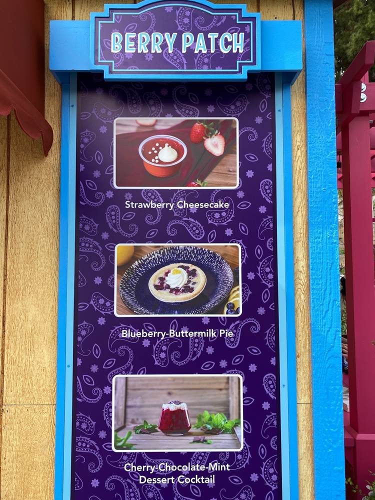 “Berry Patch” has strawberry cheesecake, blueberry pie, and a cherry-chocolate-mint dessert.