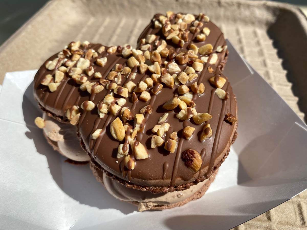 We tried the caramel-peanut milk chocolate Mickey macaron and the peanut butter & jelly mac from the “Nuts About Cheese” kiosk.