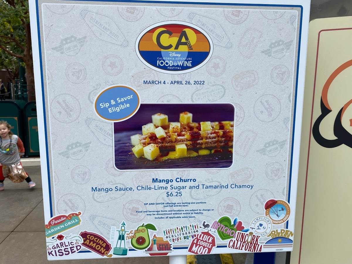 A fancy mango-churro is available just for the Festival at the Hollywood Backlot Churro Cart.