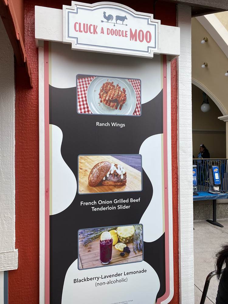 Back in Paradise Gardens Park, “Cluck-A-Doodle-Moo” features ranch wings, a beef tenderloin slider, and blackberry-lavender lemonade.