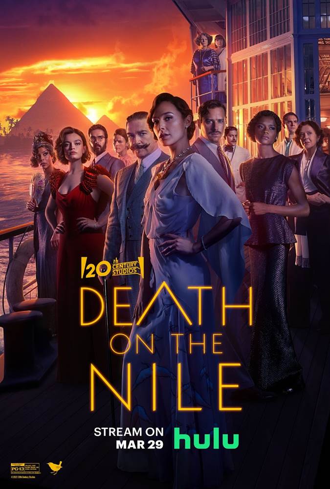 20th Century Studios’ daring mystery-thriller Death on the Nile, directed by and starring eight-time Academy Award nominee Kenneth Branagh and featuring an all-star ensemble cast, will debut March 29, 2022 on Hulu in the U.S. The film will also debut on HBO Max in the U.S. the same day as Hulu.