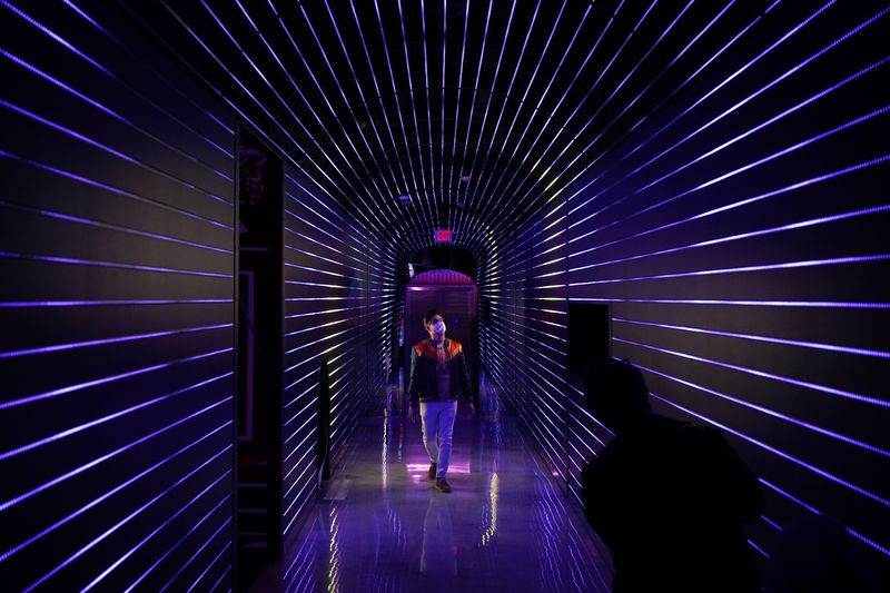 - Similar to the one in Las Vegas, too, the inside will feature a smorgasbord of fluorescent colors and lights, giant interactive art installations, and unique dining, entertainment and retail experiences — all of which take place within a large, dark, windowless warehouse.
