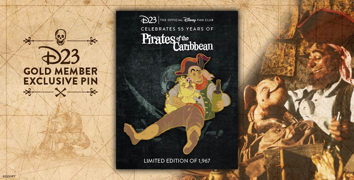 Pirates of the Caribbean 55th Anniversary Pin (Limited Edition) – Avast, me hearties and celebrate 55 years of swashbuckling scallywags on Pirates of the Caribbean with a treasure of a pin! This D23 Gold Member exclusive pin is the best bloomin’ way to dig up the nostalgia and history of this seminal attraction, beloved by guests since its debut at Disneyland in 1967, and in Disney Parks across the seven seas today.