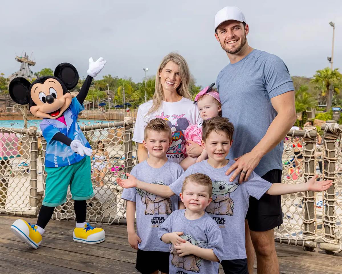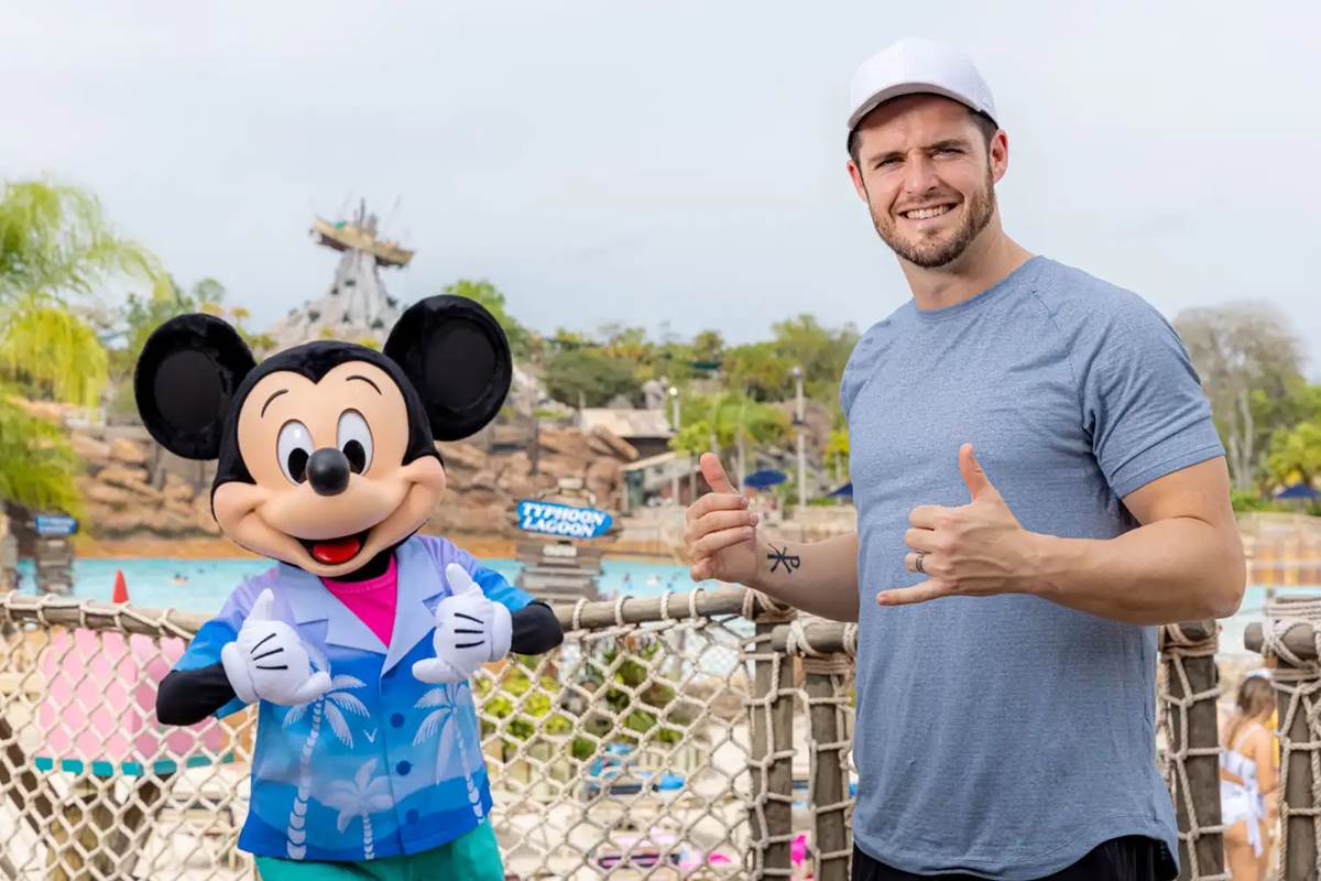 Las Vegas Raiders Quarterback Derek Carr and his family caught some rays with Mickey Mouse yesterday at Disney’s Typhoon Lagoon water park.
