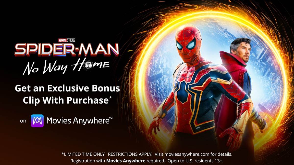 - Everyone who purchases Spider-Man: No Way Home from a Movies Anywhere connected retailer will unlock an exclusive eight-minute bonus clip, titled Spider-Man and the Multiverse in Marvel Comics, through the Movies Anywhere platform.