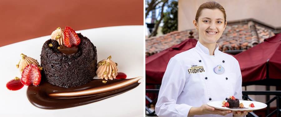 Nestled within Disney’s Grand Californian Hotel & Spa, you’ll find Napa Rose, along with the delicious Dark Chocolate Pâté and Pastry Sous Chef Diana Eid. This pastry sous chef and her team tie in the inspiration from Napa Valley itself to create this dish daily for sweet enthusiasts. The dish is a 64% chocolate pâté with hazelnut crème anglaise, hazelnut Chantilly, and port reduction sauce. Seeing the joy that food brings guests and being able to let her ideas run wild onto the plate is what makes this the sweetest job ever for Chef Diana. For her, the whisk is the go-to gadget for any chef at any level, and she herself owns about 20!
