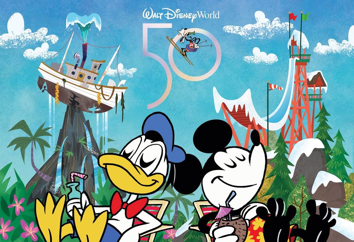- The limited edition art features Mickey Mouse and Donald Duck lounging in front of the icons of the Walt Disney World water parks - Mt. Mayday at Typhoon Lagoon and Summit Plummet (atop Mt. Gushmore) at Blizzard Beach - with Goofy ski jumping between the two.
