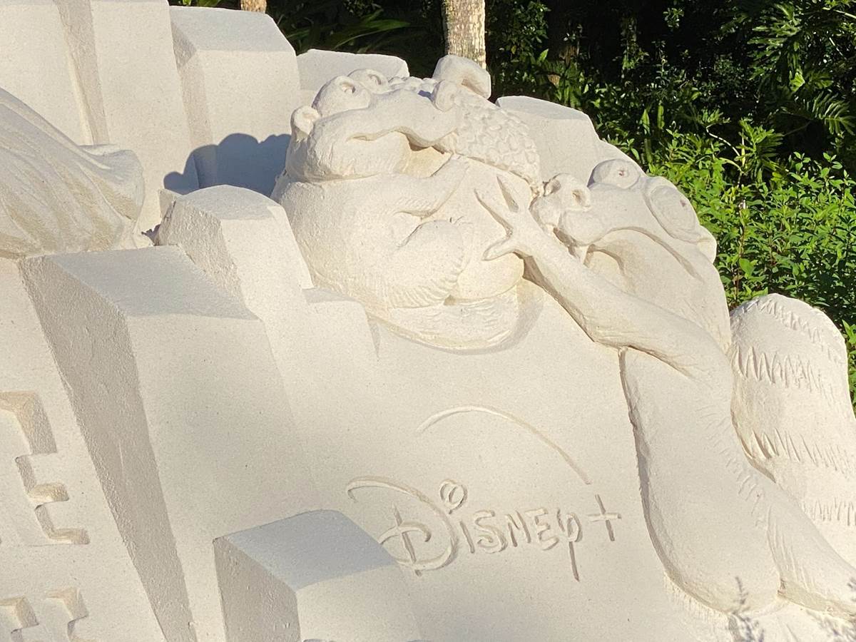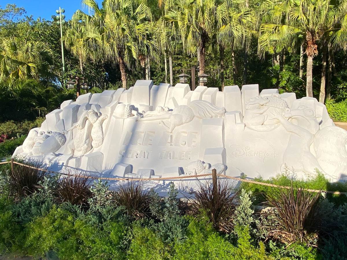 Guests entering Disney’s Animal Kingdom right now can see a new sand sculpture advertising Ice Age: Scrat Tales, a new animated short series coming to Disney+.