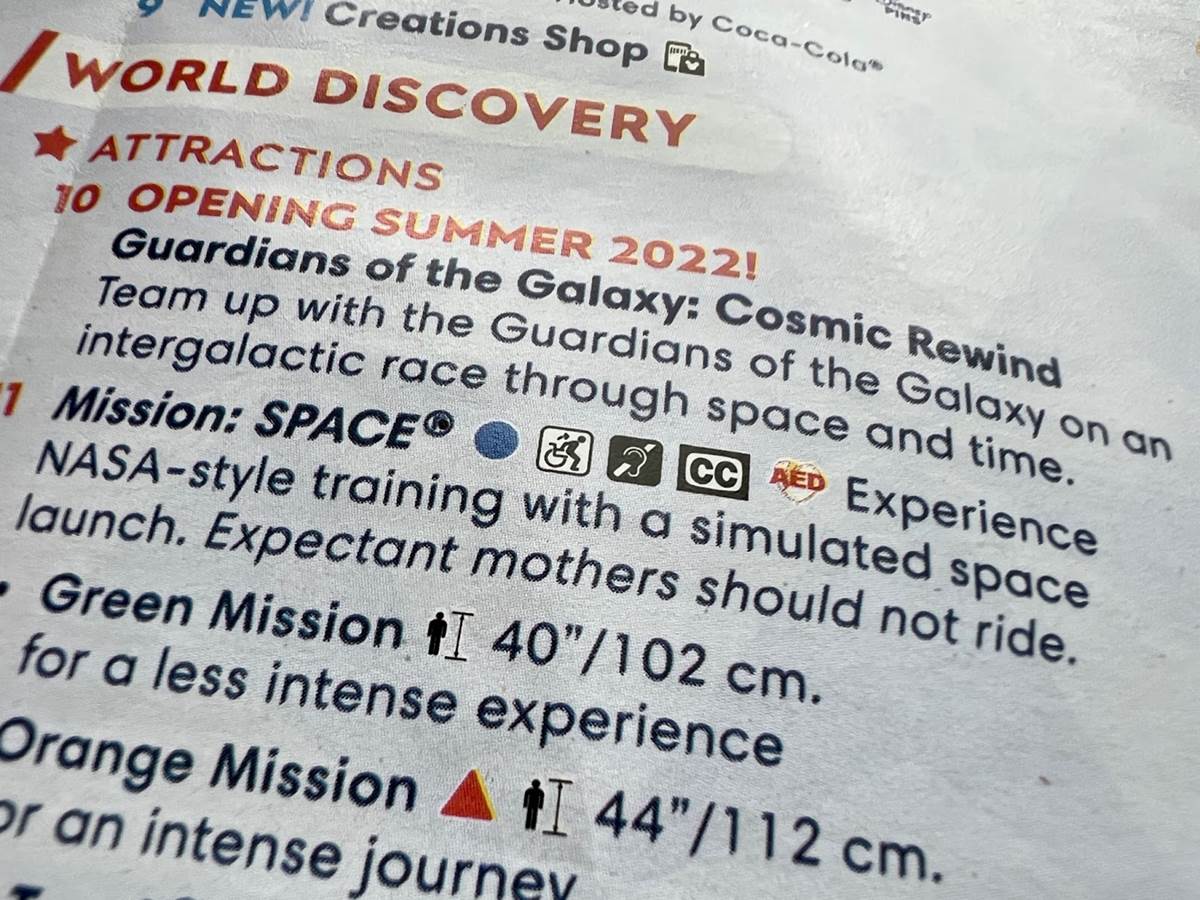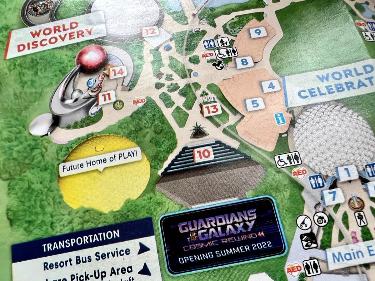Guardians of the Galaxy: Cosmic Rewind has been added to the EPCOT guide map, noted as opening Summer 2022.