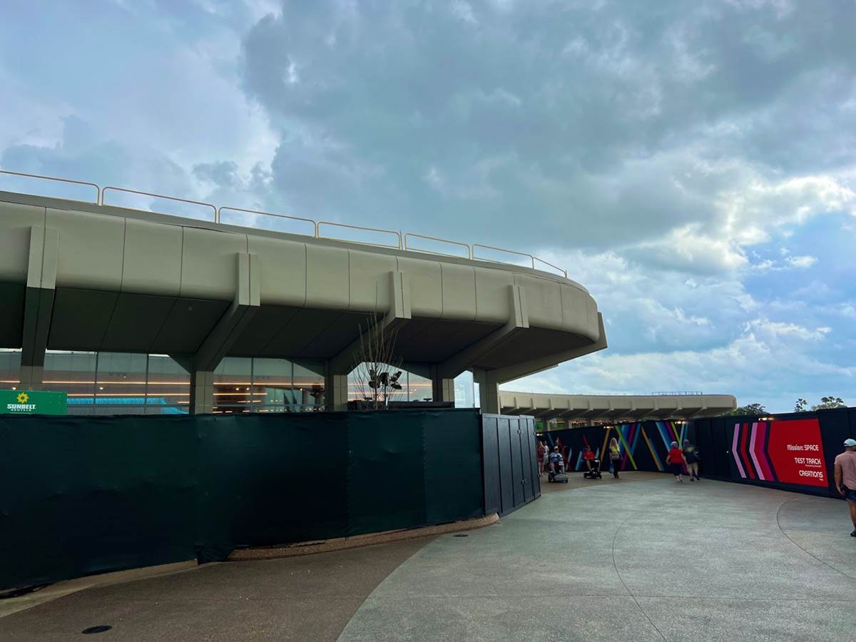 Let’s start off with a look at construction progress on Guardians of the Galaxy: Cosmic Rewind that can be seen from the EPCOT Monorail.