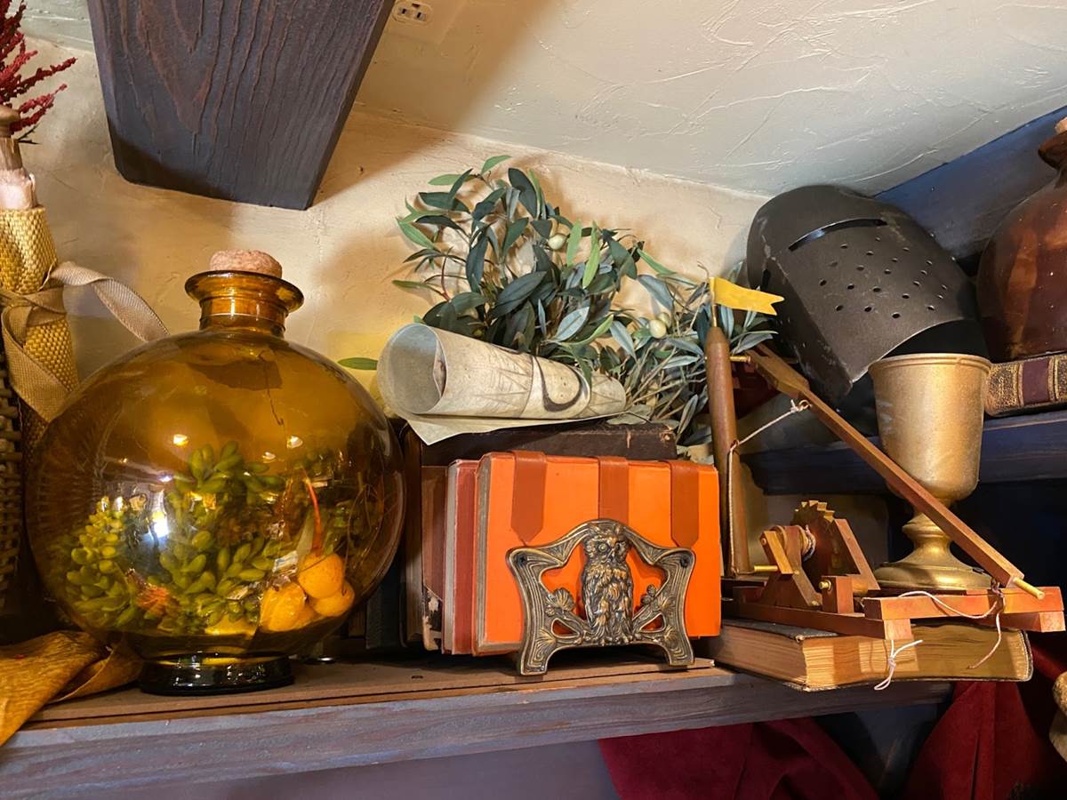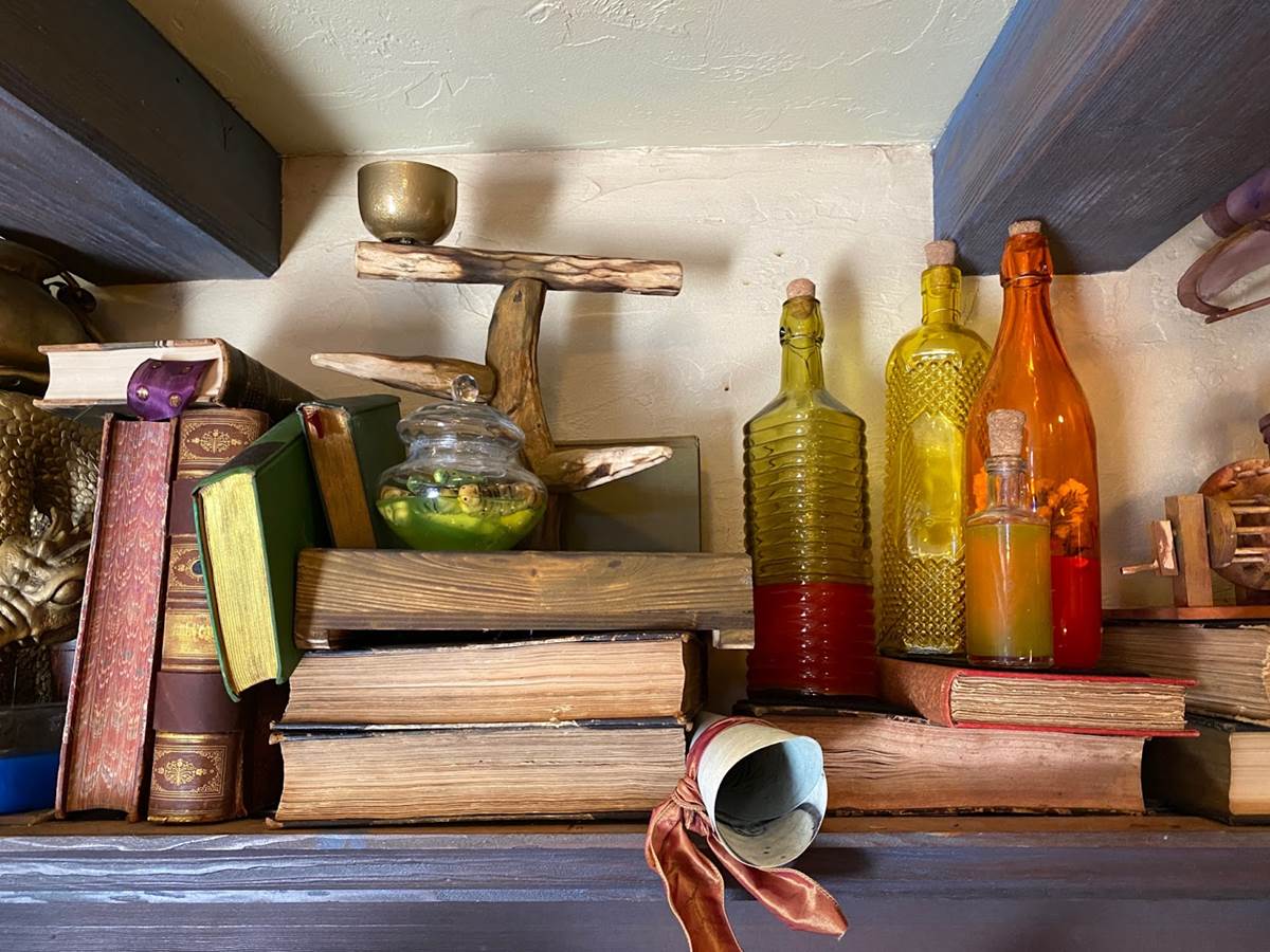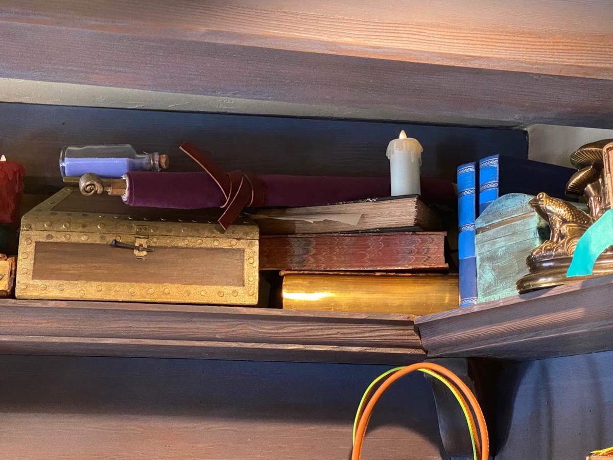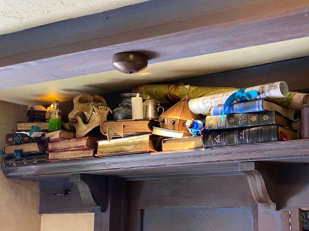 The shop is filled to the brim with artifacts and potions, and really anything you’d find lying around Merlin’s house.