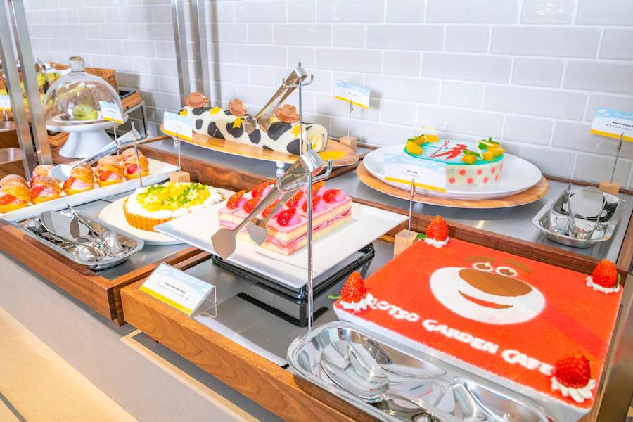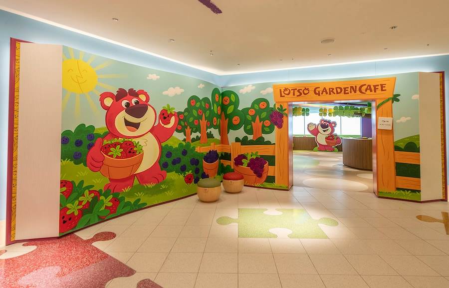- Guests can dine at the Lotso Garden Café, themed to the strawberry-scented villain from Toy Story 3. This buffet-style restaurant serves delicious food, including desserts inspired by the films, and guests will enjoy eating in the dining area with murals depicting Lotso raising fruits and vegetables.