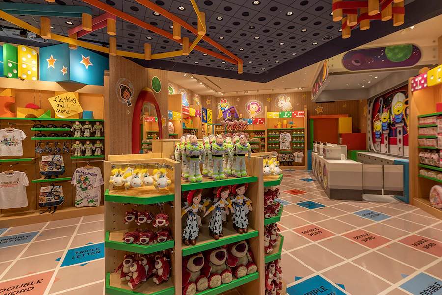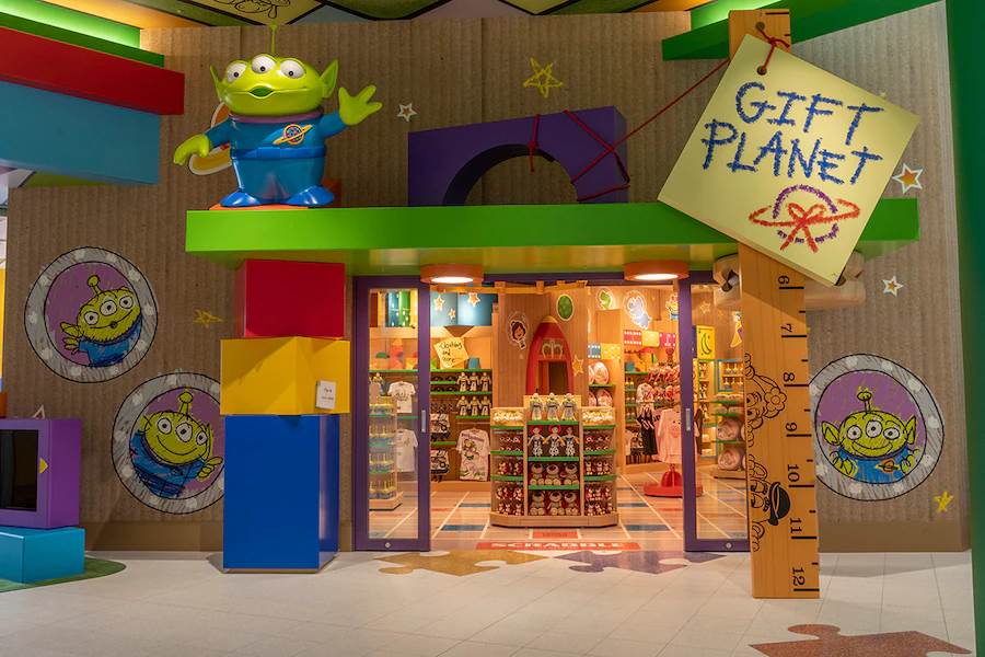- Inside the lobby, guests will find slot cars racing on tracks overhead, a giant Bo Peep game board on the ceiling, puzzle pieces used to decorate the floor, colorful furniture and more. Off the lobby is Gift Planet, a merchandise location overseen by the Aliens, where guests may purchase unique Toy Story Hotel merchandise.
