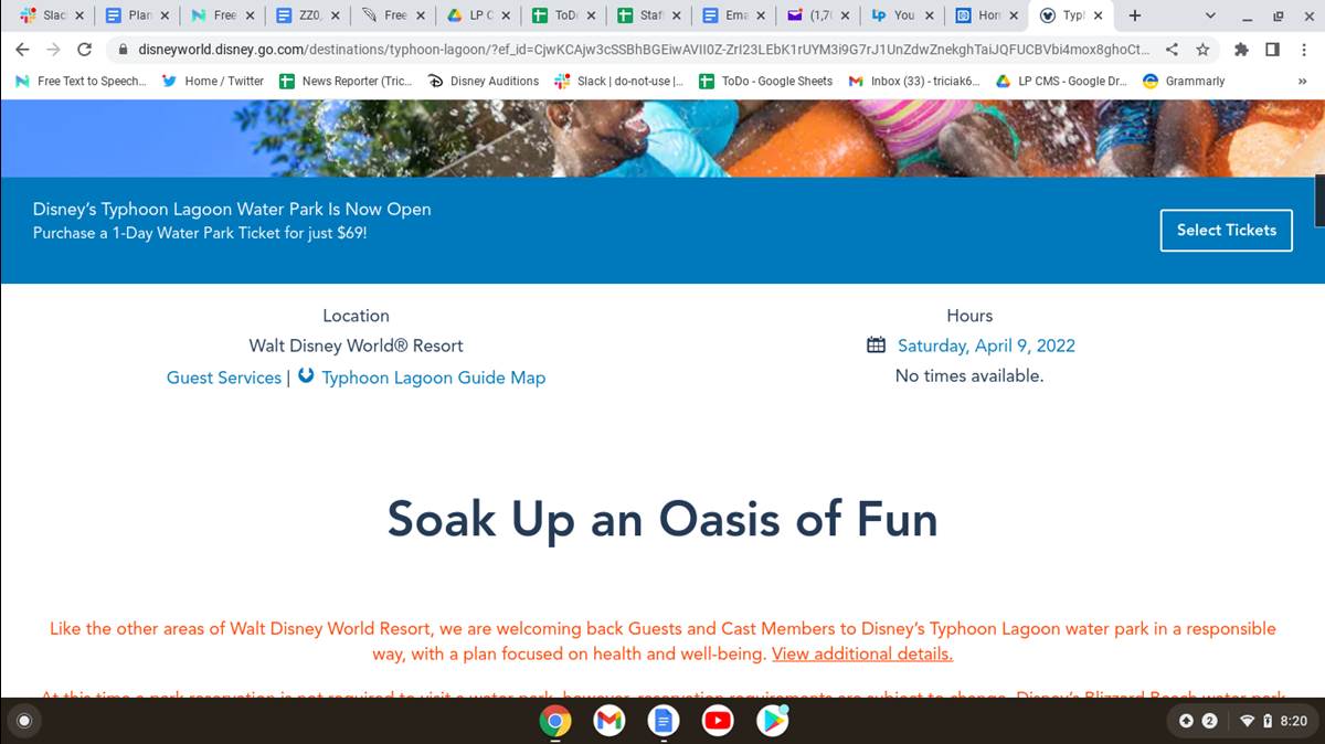 - Disney's Typhoon Lagoon is closed today, April 9th, 2022.