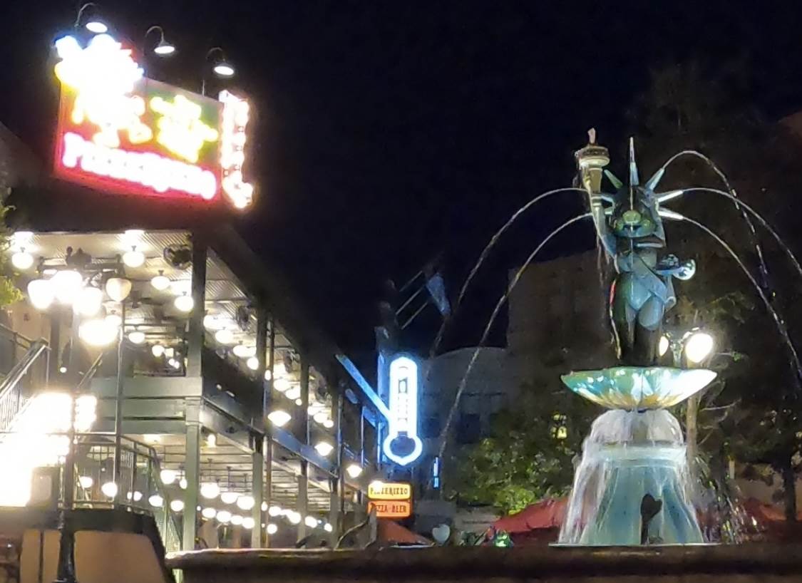 Some peaceful corners can be found throughout the day at the parks, and in the evening, tucked away off Grand Ave at Disney’s Hollywood Studios, guests can find Muppets Courtyard, home to the popular Muppet-Vision 3D attraction and PizzaRizzo quick service dining location. Take a moment to enjoy a peaceful moment in the courtyard with the trickling waters of the landmark fountain and lights of the area with a live band playing off in the distance.