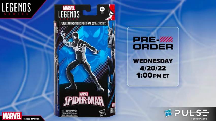 - They also gave a look at the previously-revealed Future Foundation Spider-Man figure which will also be available for pre-order at 1 PM ET tomorrow (4/20/22) on Hasbro Pulse for $27.99 and will ship in December 2022.