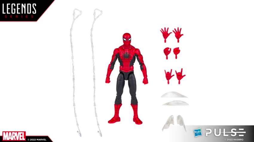 - The figure comes with a total of eight hands, some web accessories and even a pair of web wings so fans can recreate the iconic cover of “Amazing Fantasy #15.”