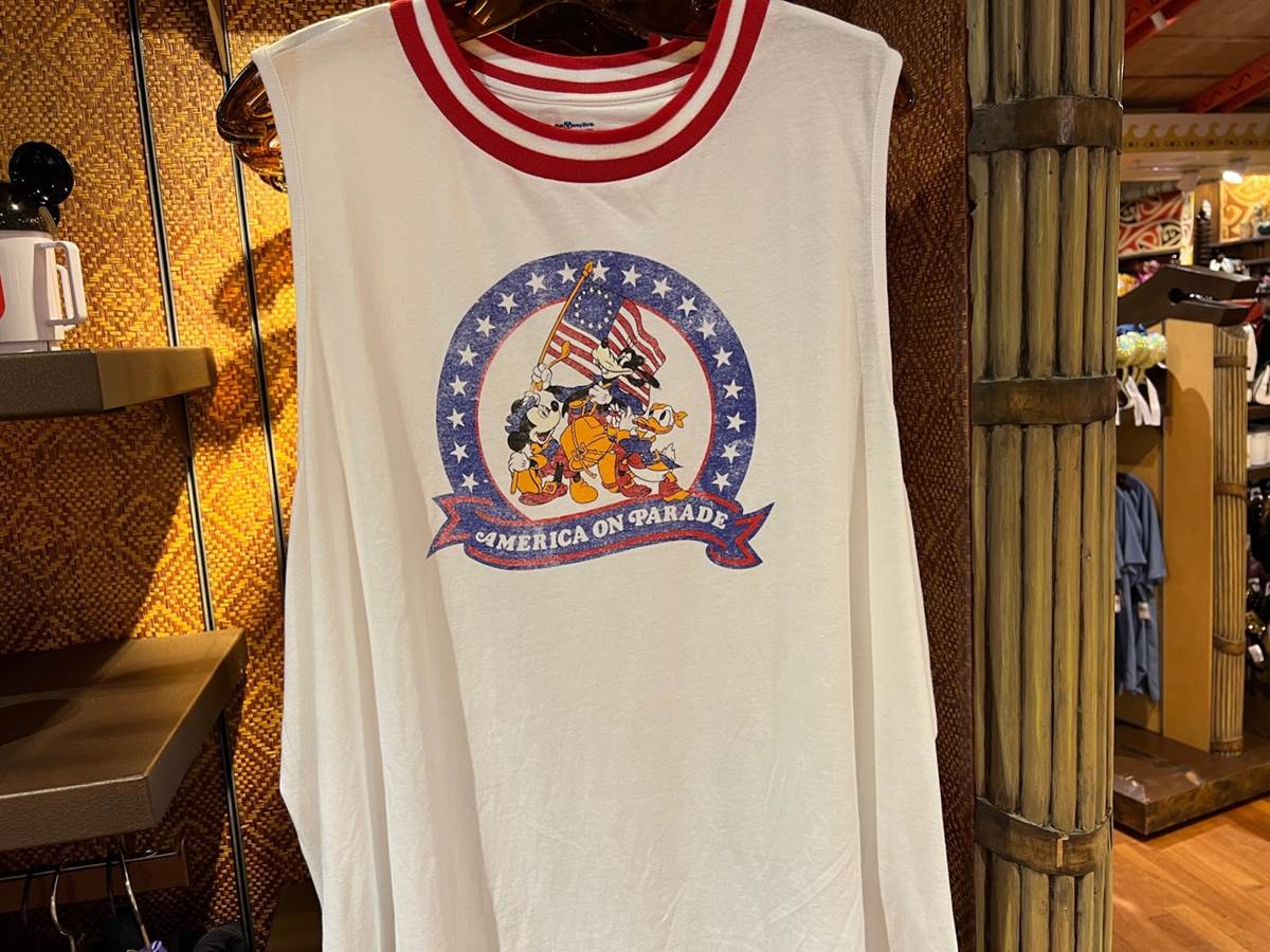 And finally, to celebrate America, we have a couple of shirts featuring the original artwork from America on Parade, a parade that ran from 1976-77 to celebrate the Bicentennial. The first shirt retails for $36.99.