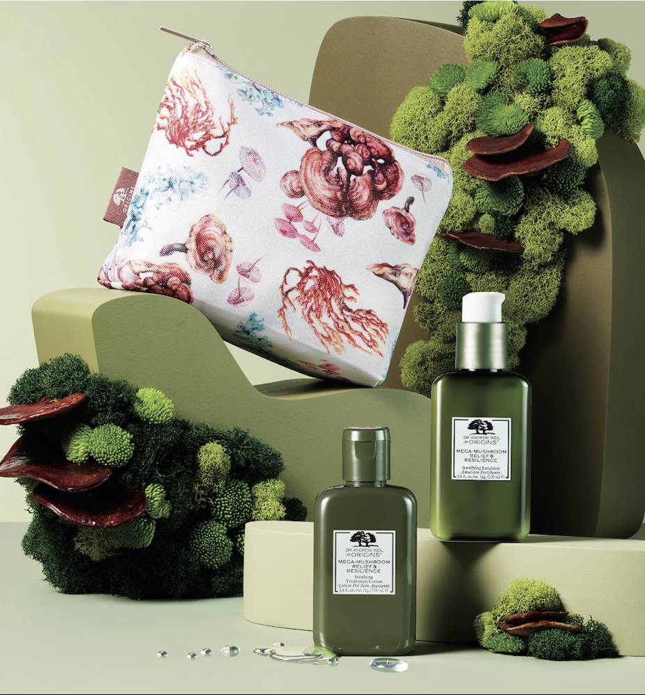 Origins has created a limited edition set that features the illustrations of National Geographic Young Explorer Nirupa Rao, and celebrates the power of nature and discovery, highlighting the power of mushrooms in skincare and in the environment. The products in this set include Soothing Treatment Lotion and Fortifying Emulsion.