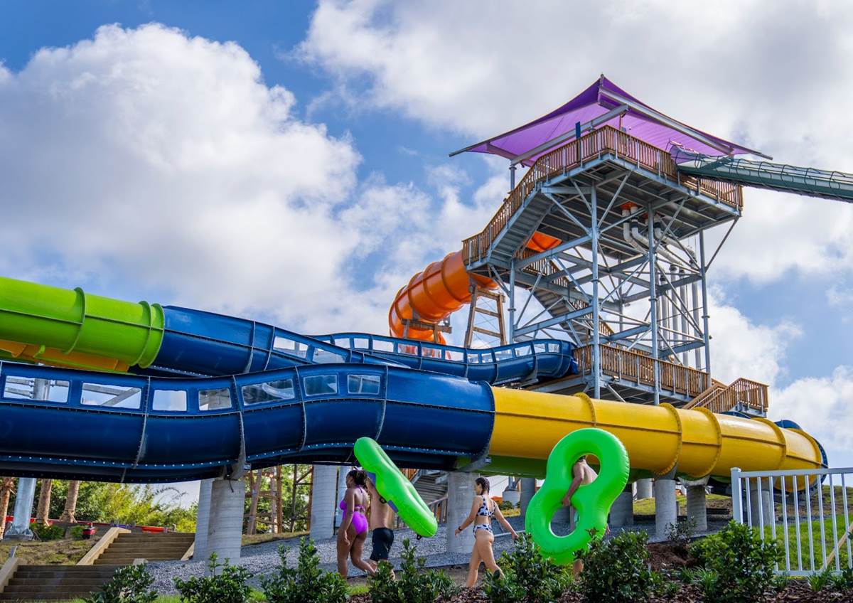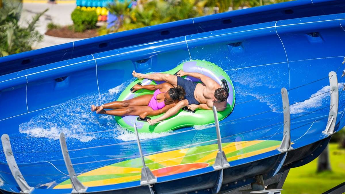 - In between thrilling rides on fan-favorite slides, guests can unwind in an all-new tropical oasis with hammocks, lounge seating and beach games.