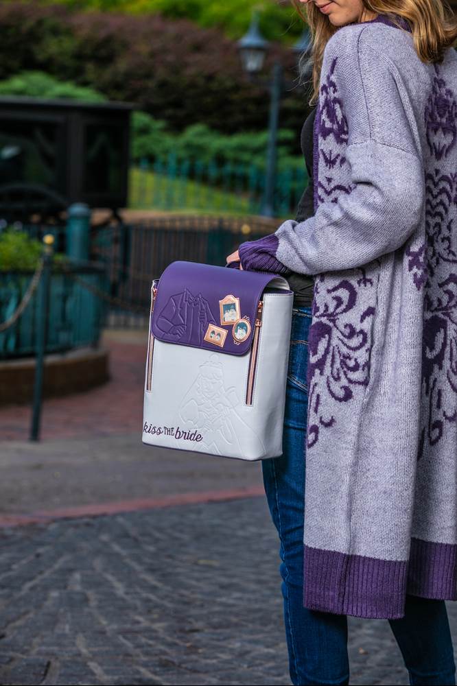 If you’ve stuck around this far thank you! Now check out this amazing Haunted Mansion/Constance Hatchaway backpack that not only features the deadly bride but also her series of headless grooms. And while it remains a mystery, there’s also a Madame Leota duster jacket in various shades of purple that’s truly calling to us!
