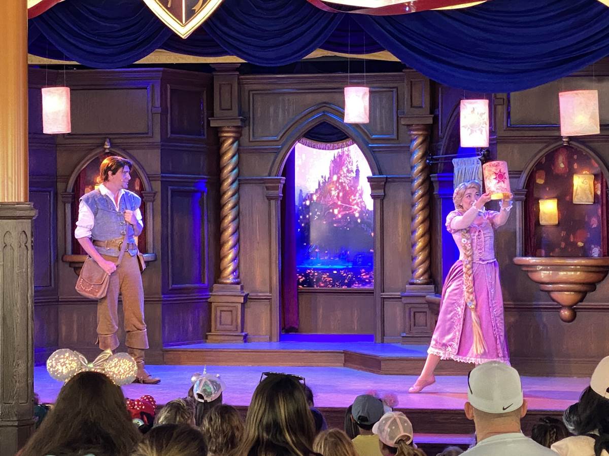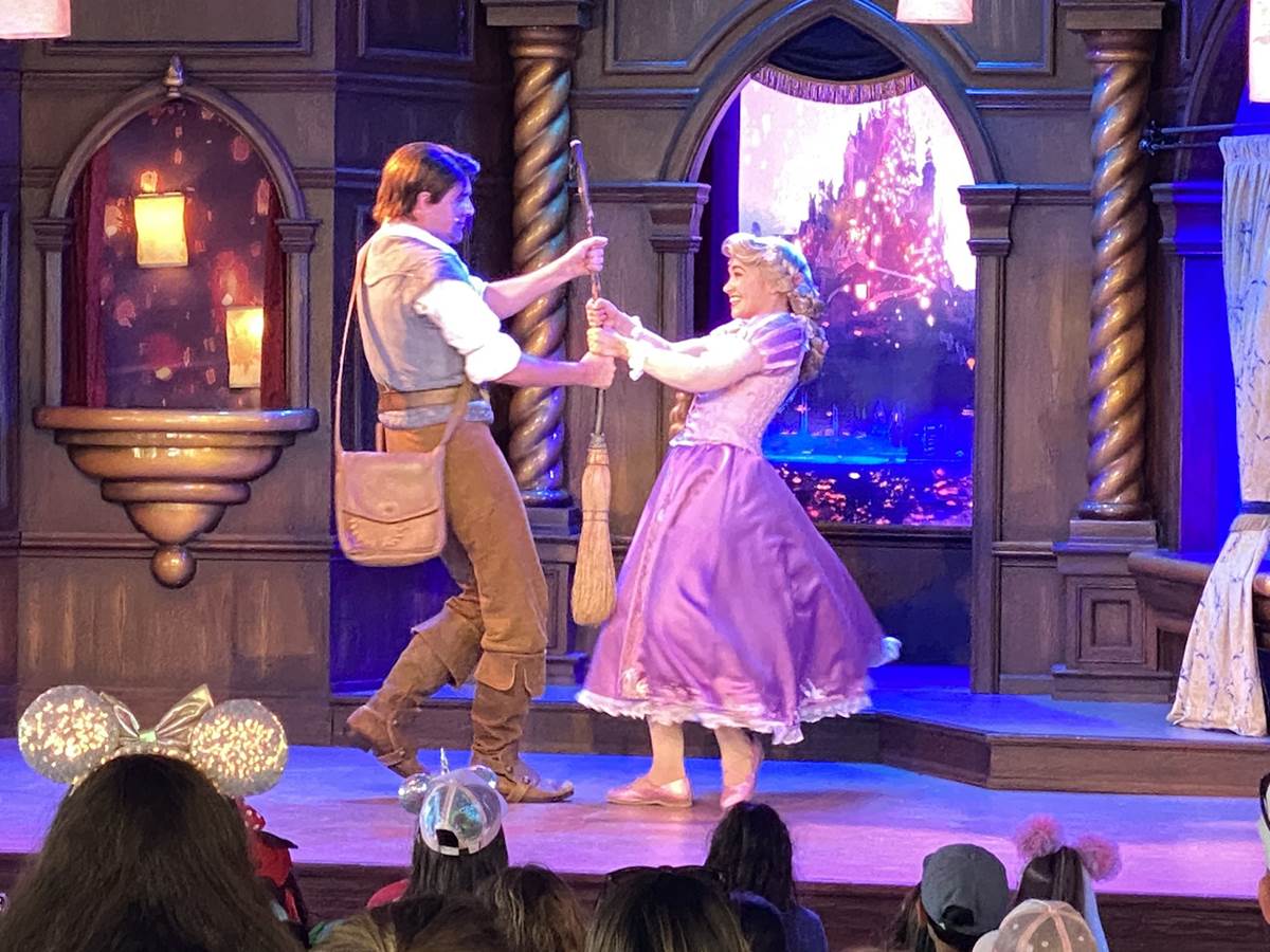 - During their respective shows, Belle and Rapunzel & Flynn join the storytelling.