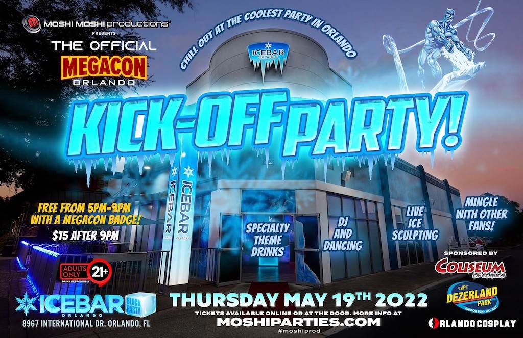 - In addition, ICEBAR Orlando is gearing up to host the return of the epic Official Megacon Orlando Kick-Off Party presented by Moshi Moshi Productions on Thursday, May 19, 2022.