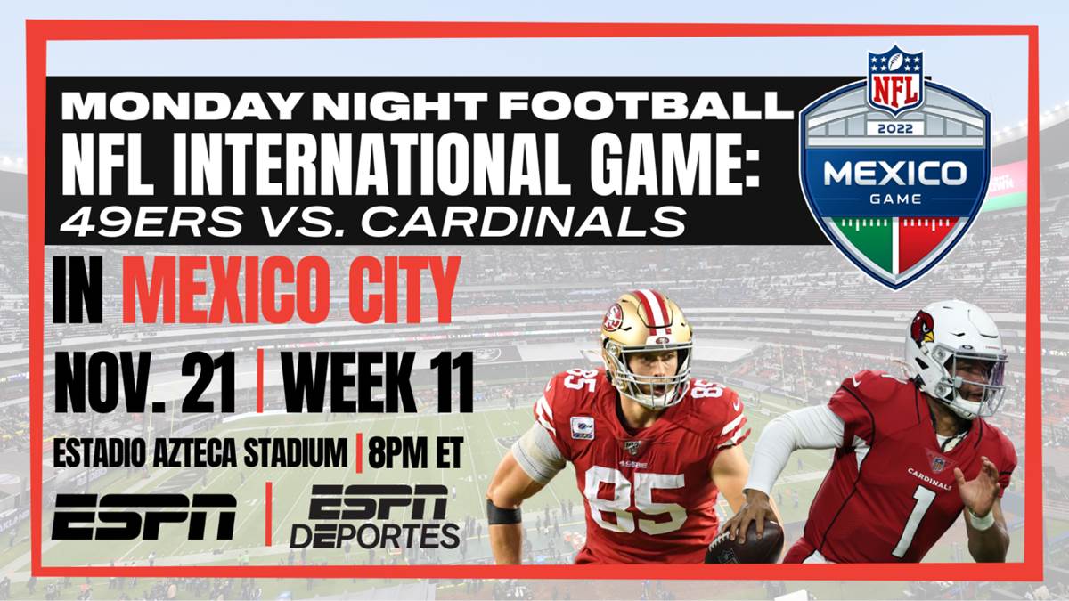- On Monday Night Football, the San Francisco 49ers will play the Arizona Cardinals at Estadio Azteca Stadium at 8 p.m. on November 21 (Week 11).