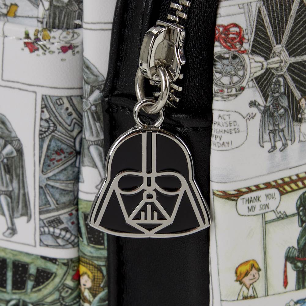 “Parenthood is a galactic responsibility. This mini backpack displays an all-over print of Darth Vader with a young Luke and Leia. Featuring artwork by Jeffery Brown, these comic book-style panels imagine endearing scenarios of Darth Vader as he experiences the everyday challenge of raising two of the galaxy’s finest heroes.”