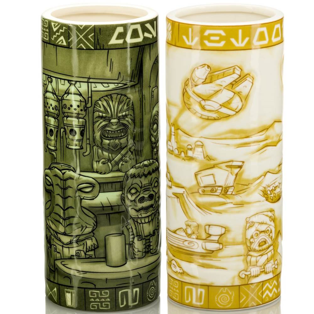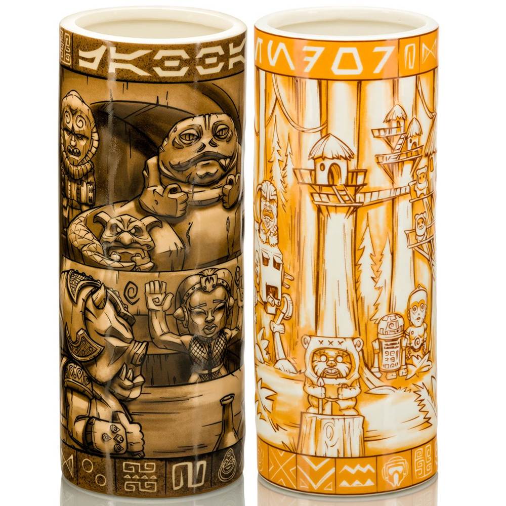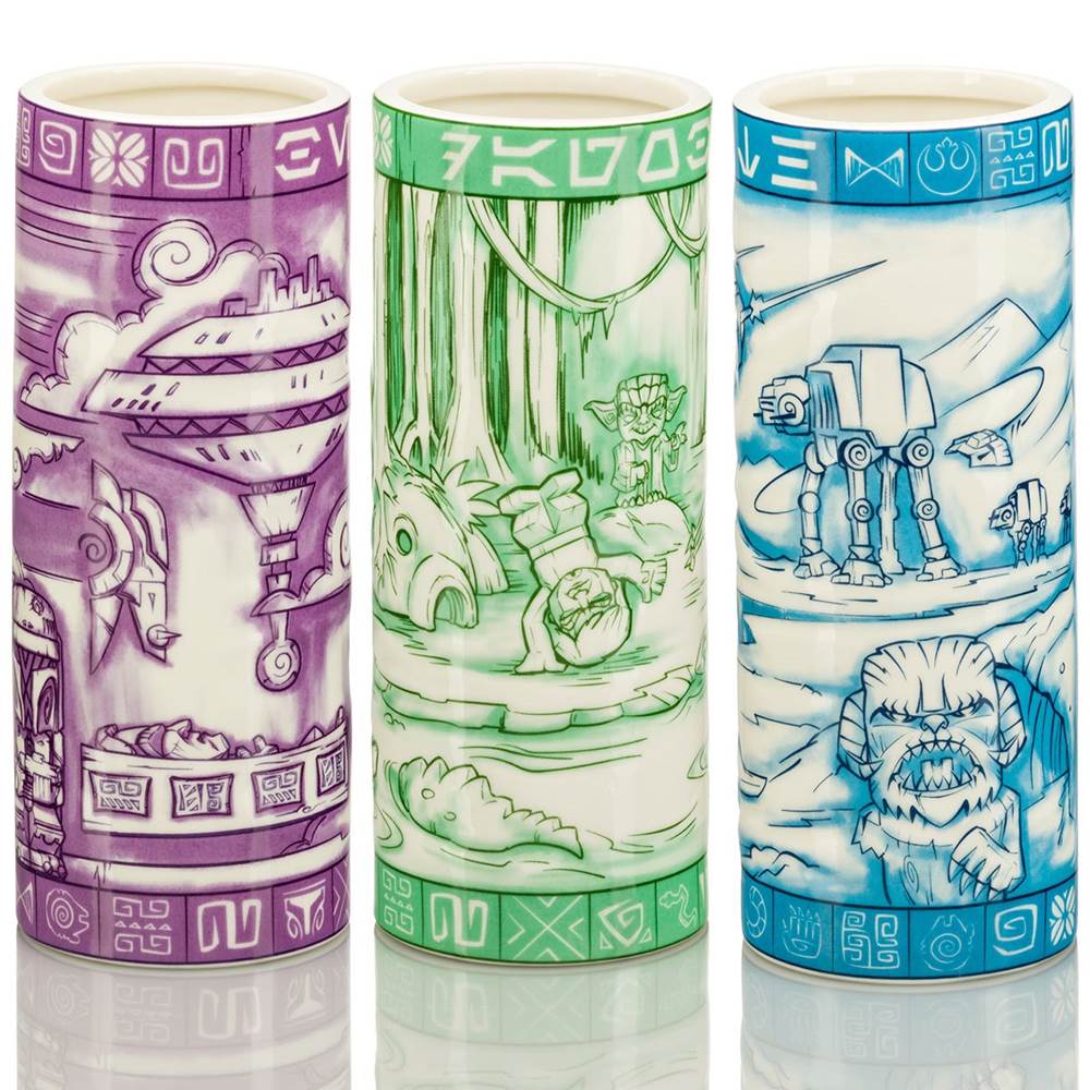 These creative and colorful Star Wars Scenic Geeki Tiki Mugs feature a wraparound scenic designs bursting with characters and imagery. From the sands of Tatooine and the swamps of Dagobah, to Hoth, Jabba’s Palace and beyond, fans will find fun nods to the beloved trilogy.