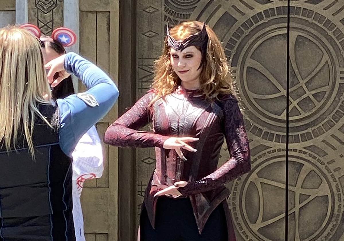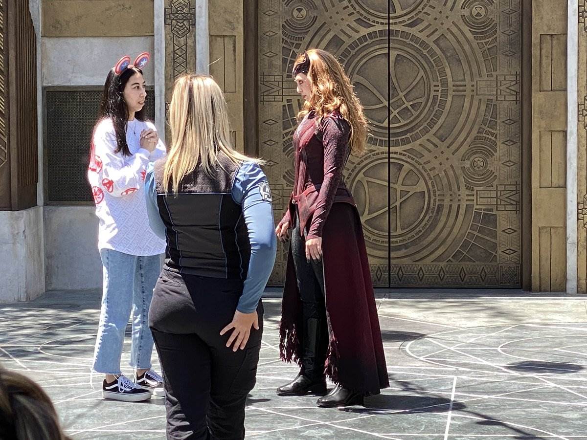 - Sure enough: We spotted the Scarlet Witch out greeting guests this afternoon: