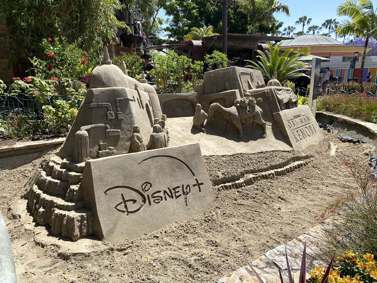 - Recently, the Walt Disney Company, notably Disney+, has had a fondness for promoting their new productions with sand sculptures at the Disney Parks. While most of them have been placed at Disney’s Animal Kingdom at Walt Disney World, Star Wars fans can find the latest one of these sculptures at the Disneyland Resort.