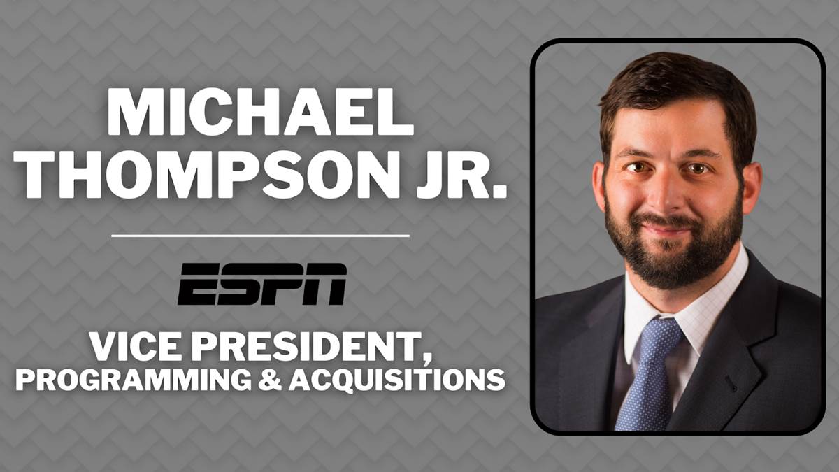 ESPN has named Michael Thompson Jr. to the new role of Vice President, Programming & Acquisitions.