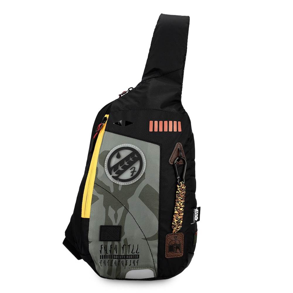 Reward yourself with this crossbody sling inspired by the galaxy's most notorious bounty hunter, and the star of the new Disney+ series The Book of Boba Fett. Featuring cool graphics and decals, this Star Wars bag's clever compact design has zip pockets and enough space for all your essentials.