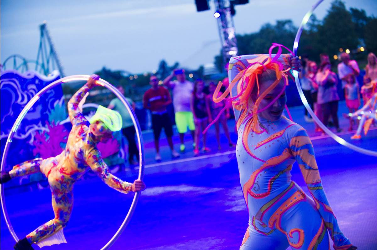 - Club Sea Glow – The party amps up after dark at Bayside Stadium, where a DJ will be mixing dance music all evening leading up to the start of our fireworks finale. Enjoy plenty of space to spread out and dance while enjoying the entertainment. That includes dancers and high-energy atmospheric acts to get the party going.
