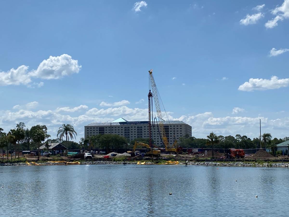 - An impossible-to-miss crane is now staged in the parking lot next to the park’s entrance, just behind construction fences.