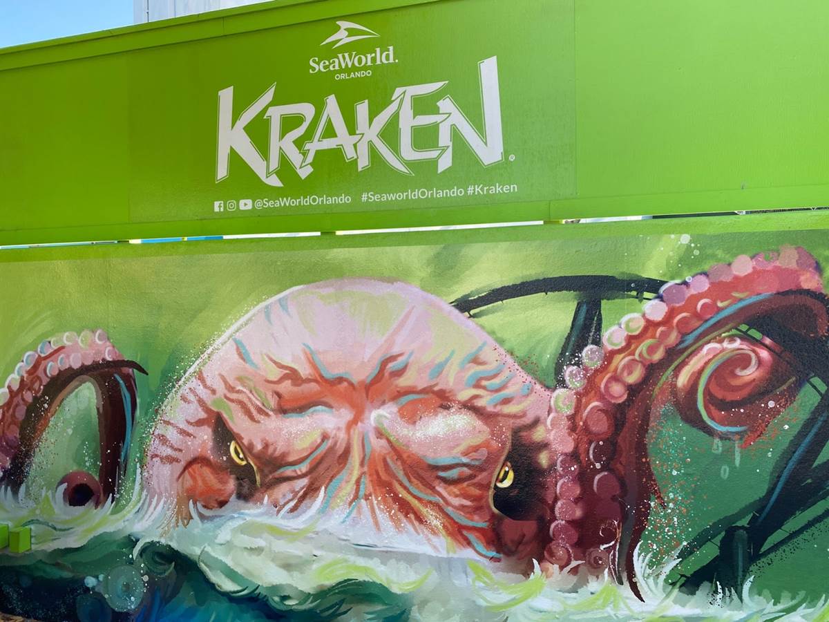 This wonderful new mural featuring the coaster’s namesake, a mythical Kraken, can be found just outside of the attraction.