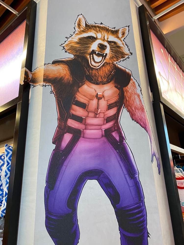 - One corner of the Creations Shop has been decked out like it’s Xandar, including some fun wall decals of Rocket and Groot.