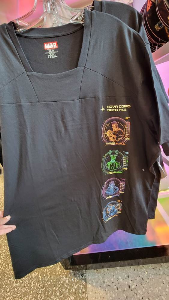 - Some new apparel and accessories are also available, including this t-shirt featuring some of the villains the Nova Corps is keeping tabs on.