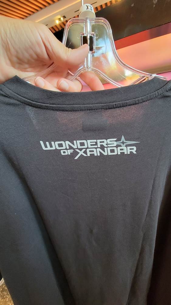 - The Wonders of Xandar pavilion logo can be found on the back of the shirt.