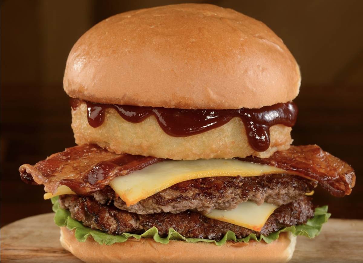 - Barbecue Burger: Two pressed signature blend patties topped with fried onion ring, muenster cheese, bacon, BBQ sauce, and lettuce