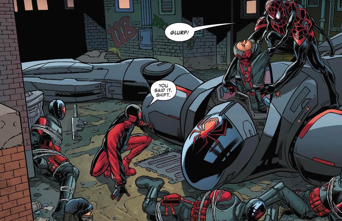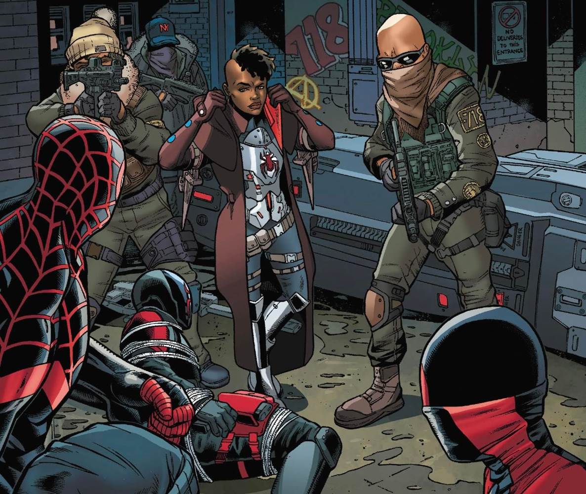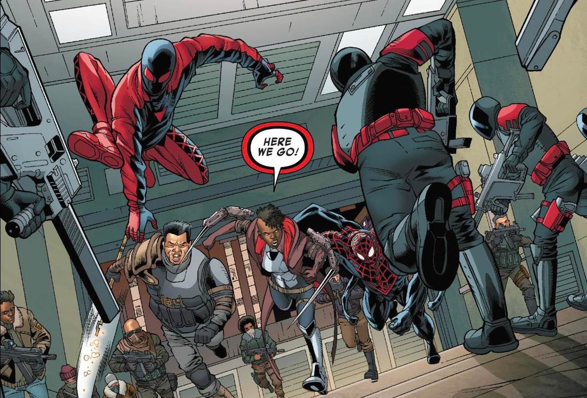 Naturally, despite the fact that he could simply leave this reality behind and return to his own, Miles wants to help. So now Spider-Man has become a part of this ragtag army of rebels fighting against impossible odds with his clone calling all the shots.
