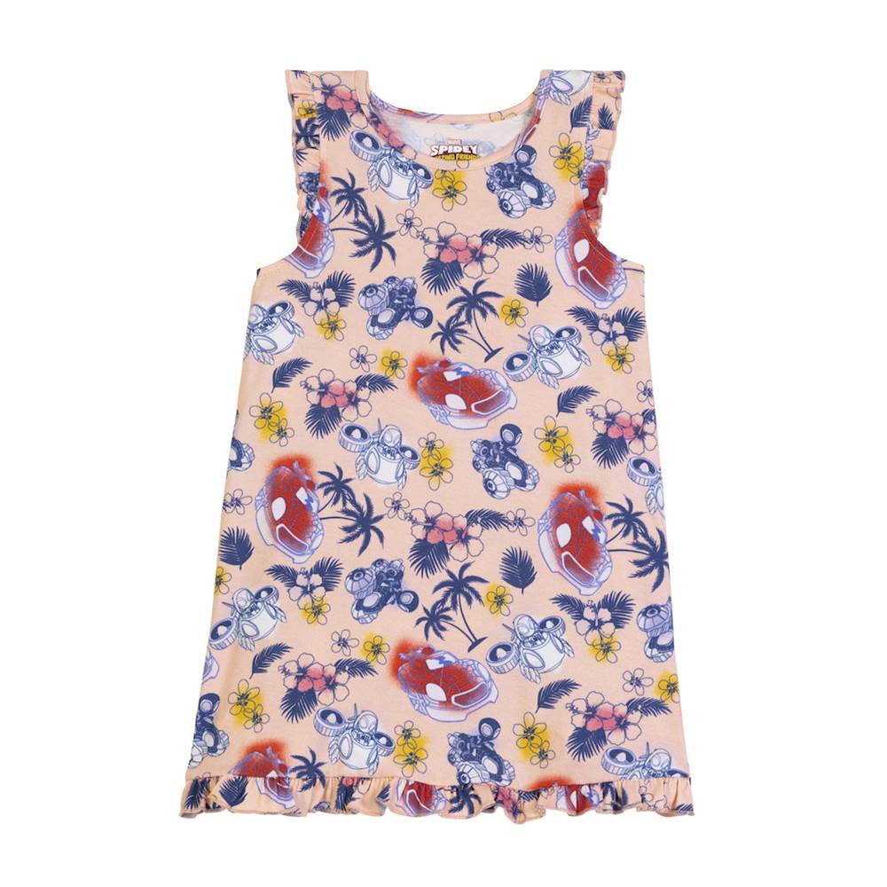 Spidey Hawaiian Car Print Ruffle Dress, Pink Salt