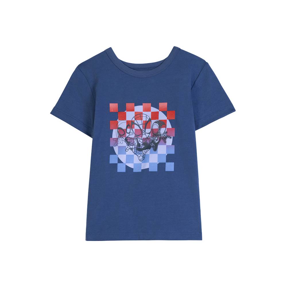 Spidey Checkered Print Relaxed Tee, Navy Multi