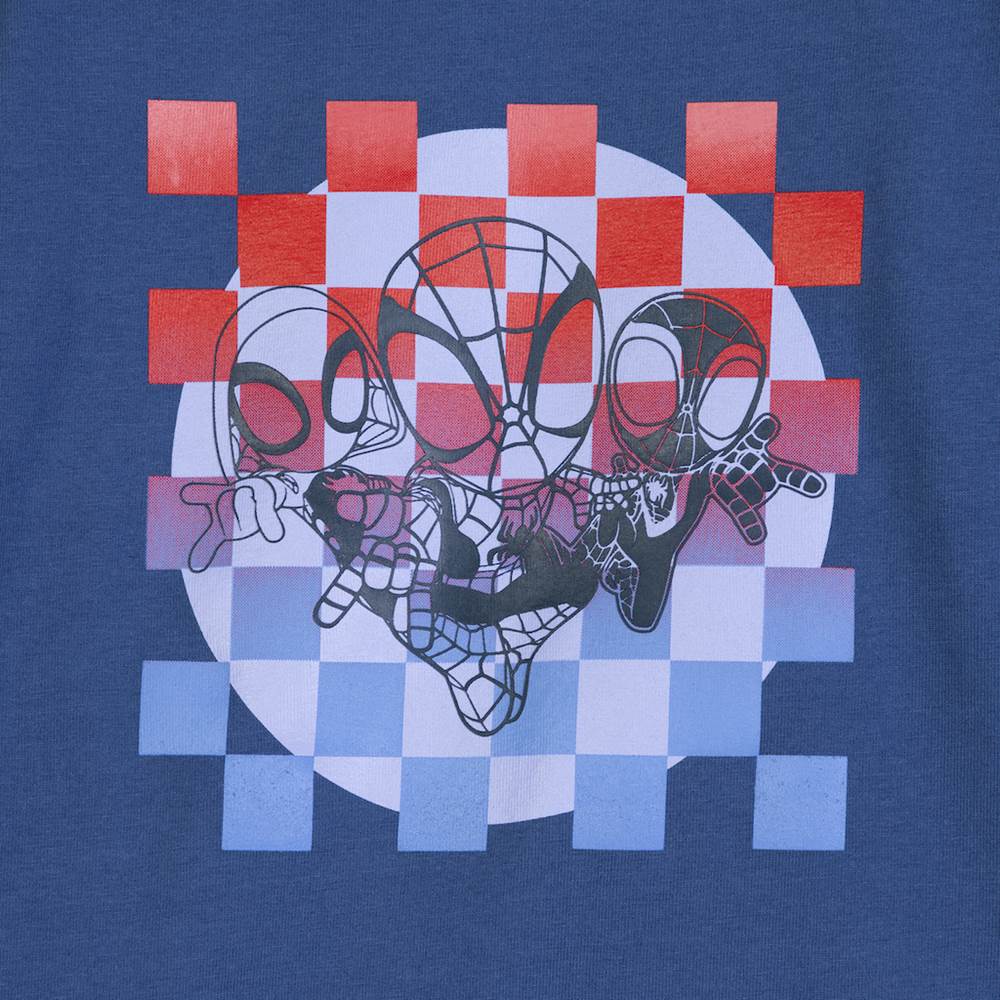 Spidey Checkered Print Relaxed Tee, Navy Multi