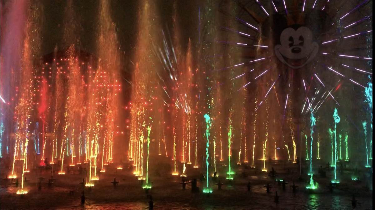 - The show, which features over 1200 fountains and lights, whisks guests into a fantastic world of water and music and their favorite scenes from classic Disney and Pixar films, including The Little Mermaid, WALL-E, Toy Story, Beauty and the Beast, The Lion King, A Bug’s Life and so many more.