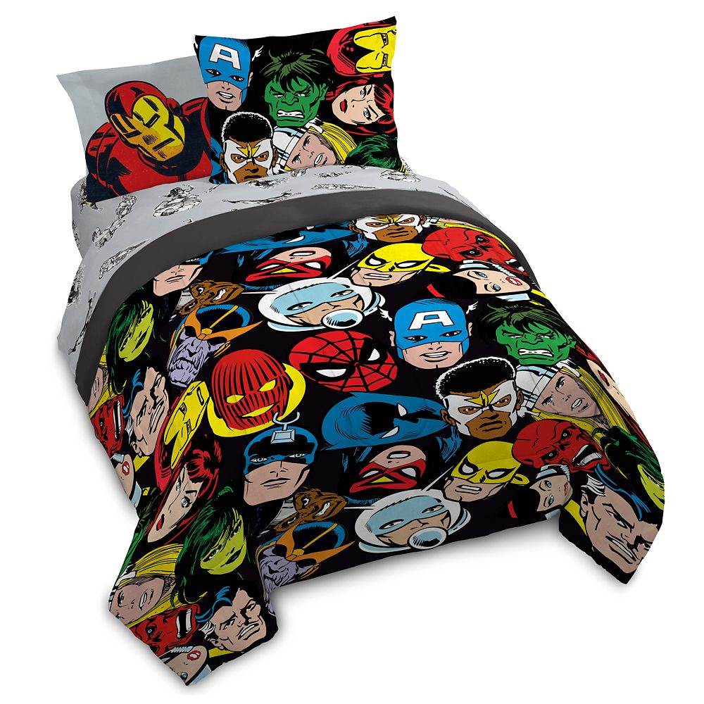 - Marvel movie and Comic book fans can welcome the Avengers, the Eternals or Iron Man to their quiet zone with epic bedding sets that includes a comforter, sheets sets and pillow shams. Select designs also come in sheet sets.