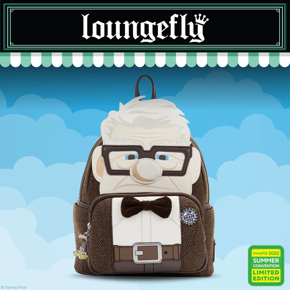 Mr. Fredricksen might be a bit of a grump, but he has a kind heart. Bring him with you on your adventures with this mini backpack that features his face, bow tie, and Grape Soda button. Look closely and you’ll notice that the zipper pull includes a charm of his tennis ball footed cane.