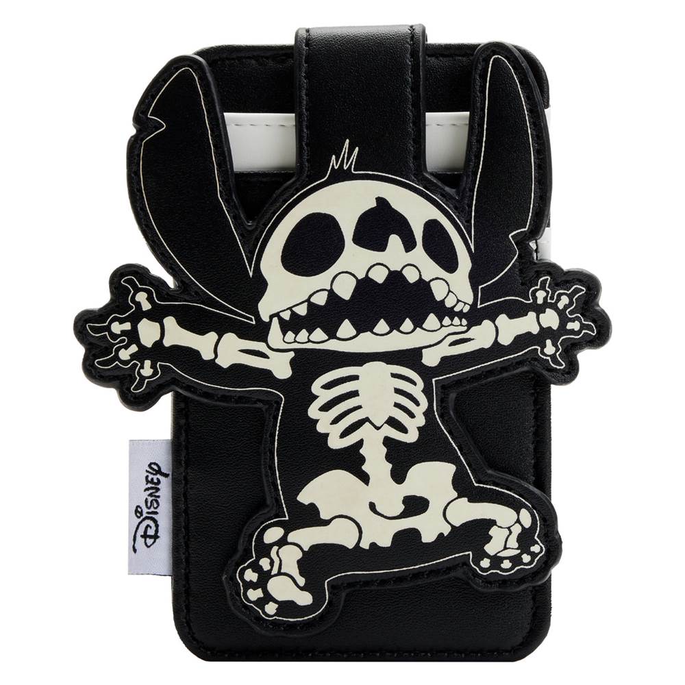 Oh no! Stitch has found himself in some charged trouble and I for one am shocked! The little troublemaker is showcased here in skeleton form, complete with attached ears and bony arms extended. As an added bonus, this design glows in the dark. If that’s not enough a matching cardholder is available for even more fun!